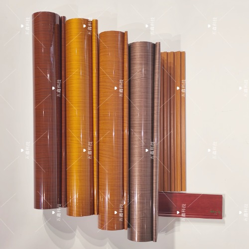 在装饰效果上,它也精准踩中了当下的审美趋势。如今的消费群体愈发看重装饰的个性化与自然感,五鑫科技热转印膜恰好满足这一需求。其纹路还原度细腻,尤其是木纹系列,能复刻出天然木材的肌理质感,从浅调的原木风到深褐的复古风,每一种纹路都自带层次感;同时搭配丰富的色彩选择,既能适配简约现代的家居风格,也能融入雅致复古的工艺设计,让原本朴素的基材焕发出更饱满的视觉张力,无需额外修饰,就能提升装饰板、家具面板等产品的整体质感。