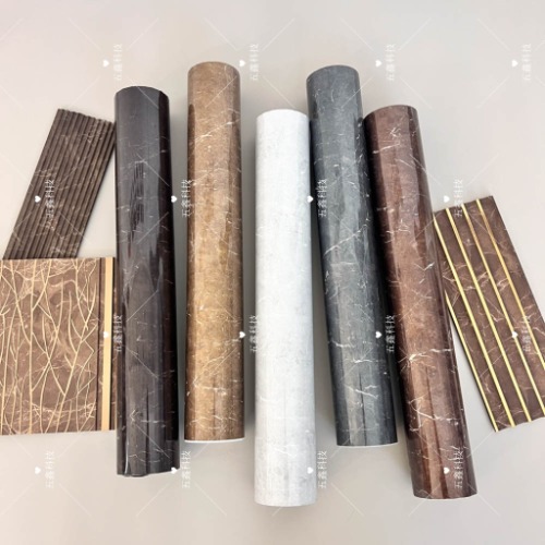 在建材领域,五鑫科技的热转印膜为装饰板、格栅板、背景墙等产品注入了新的生命力。通过仿真木纹、石纹或抽象图案的转印,传统建材得以突破材质限制,满足从古典到现代的多样化设计需求。例如,其高光幻彩大理石热转印膜可赋予板材如天然石材般的奢华质感,同时解决了天然石材重量大、易破损的痛点。
