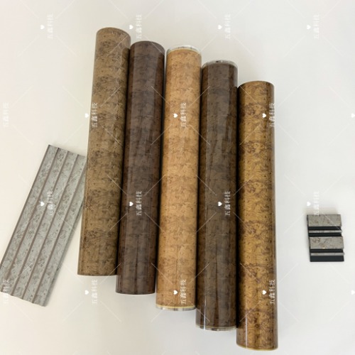 技术突破则为行业注入了更多可能。早期的热转印膜多局限于平面转印,且图案层次感不足,如今随着工艺升级,已经能精准复刻天然材质的细微脉络。无论是大理石的自然龟裂,还是木纹的生长纹理,都能通过光刻与叠印技术完整呈现,甚至能实现视觉与触觉的双重还原——指尖触碰到的是细腻肤感,眼前所见却是天然石材的立体层次。五鑫科技的龟裂大理石纹系列产品,便是技术与美学结合的例证,白纹与墨底的交融、鎏金碎片的点缀,都是通过工艺优化实现的创意表达。同时,新型膜材的柔韧性也大幅提升,在曲面、异形基材上也能实现无缝贴合,打破了应用场景的限制。