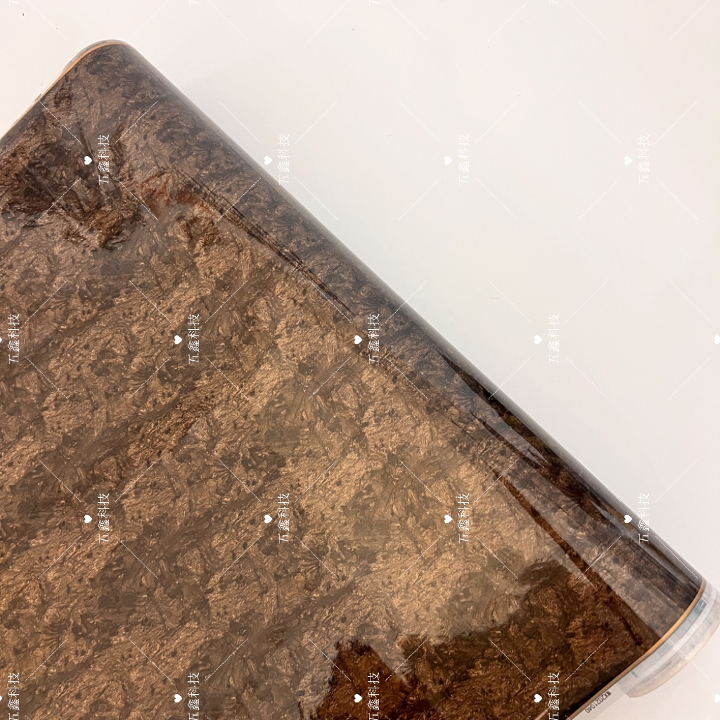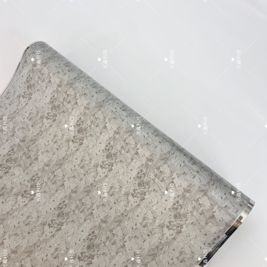 五鑫科技斑驳肌理系列热转印膜,以自然絮状交织的斑驳肌理为核心纹路,色调涵盖深黑、暖棕、浅银等多元色彩。它可耐日常刮擦、抵御水渍侵袭,长期晾晒也不易失色,适配WPC、ABS、PP等材质的装饰板表面装饰,让装饰板兼具自然质感与适配多场景的实用属性。