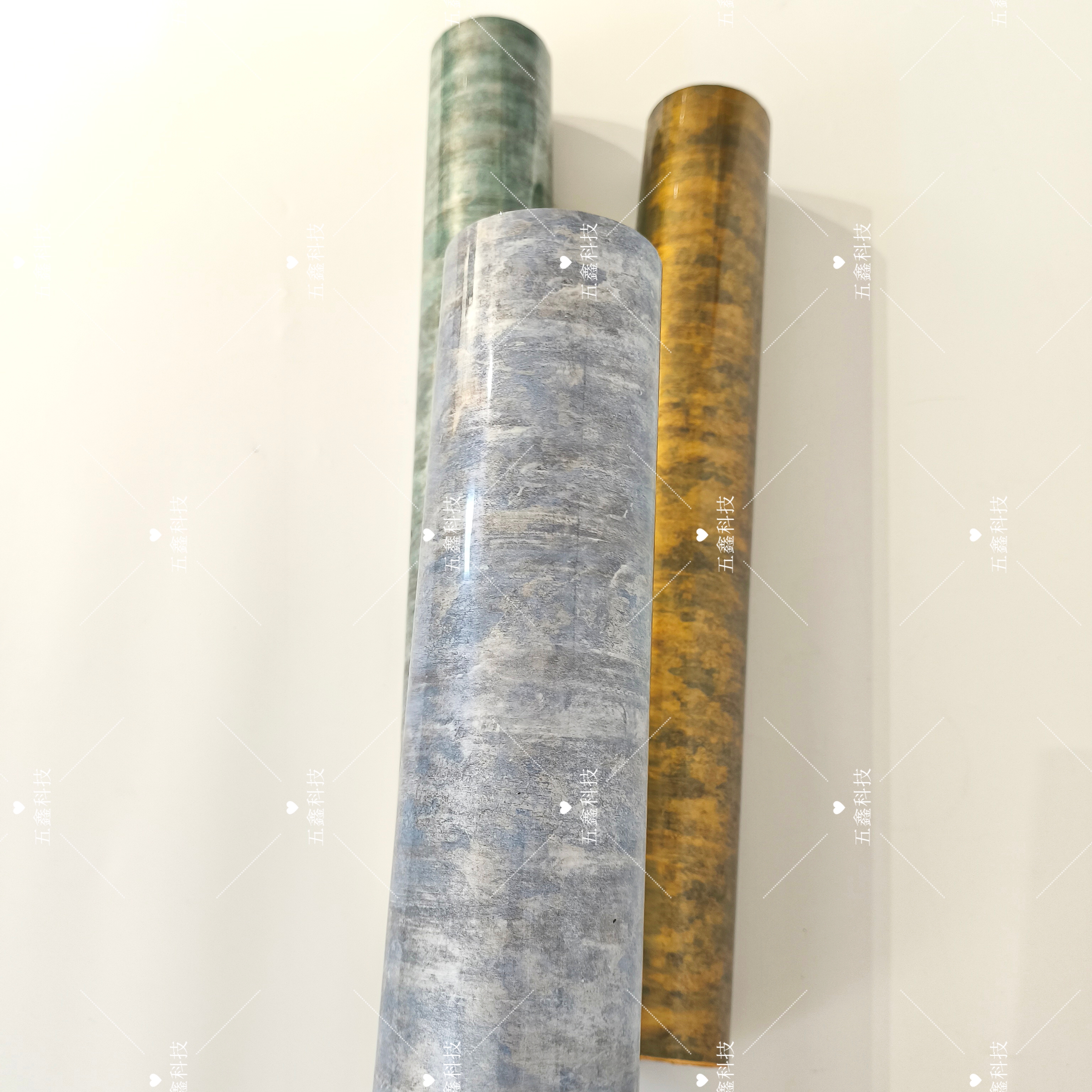 五鑫科技肤感做旧金属热转印膜,拥有复古鎏金、做旧青灰、质感银灰等丰富色彩,表面呈现自然做旧的金属肌理。其具备良好的耐刮、耐水、耐晒性能,能长久保持纹理与色泽,可适配WPC、ABS、PP材质的装饰板、格栅板表面装饰,为空间打造复古金属质感的别致格调。