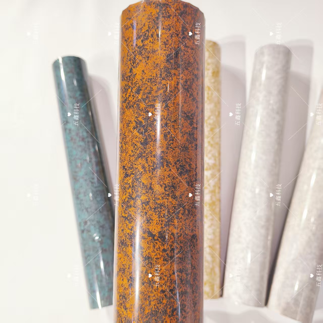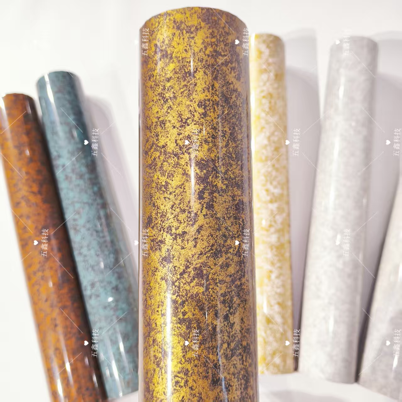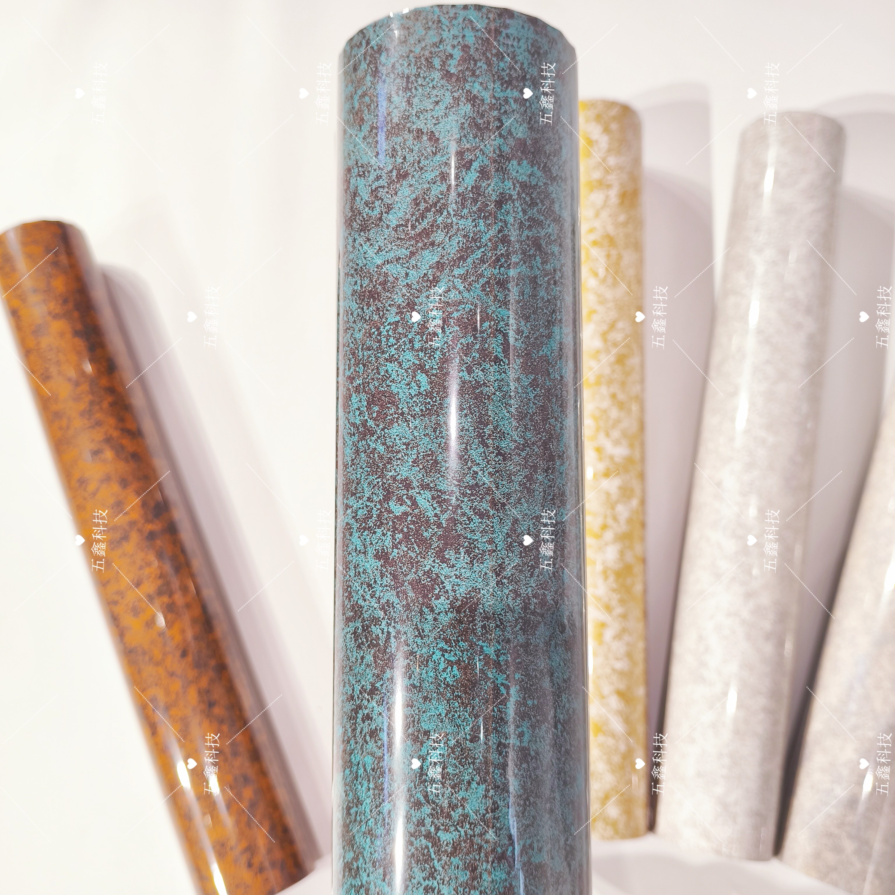 五鑫科技这款热转印膜,带着复古斑驳锈蚀肌理纹路,拥有棕褐、墨绿、金调、银调等色系。它耐刮擦、防水渍、抗日晒,适配ABS、WPC、PP等材质的装饰板,也可用于石塑线条的表面装饰,让这些基材裹上沉淀的复古质感,为装饰面添上自然做旧的层次。