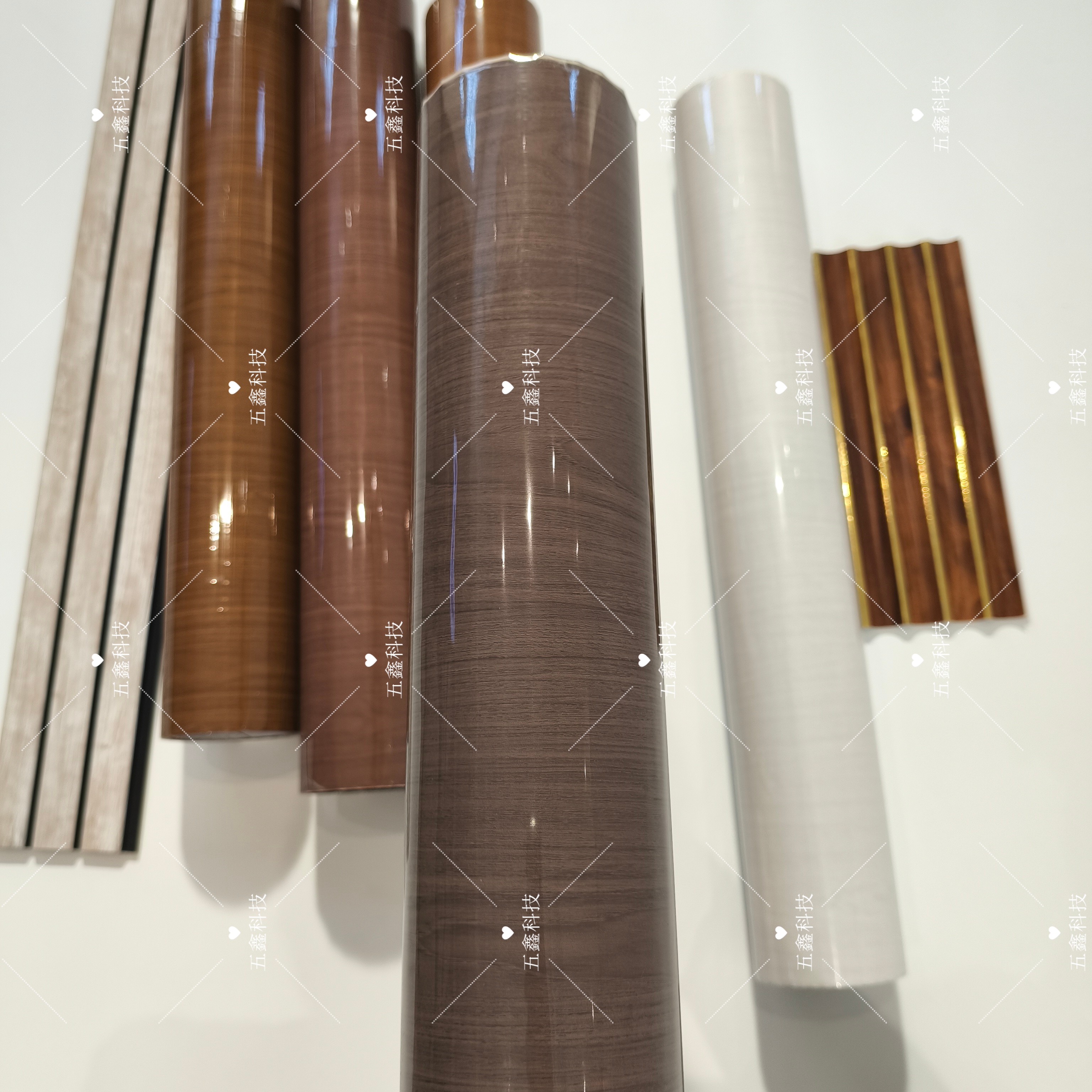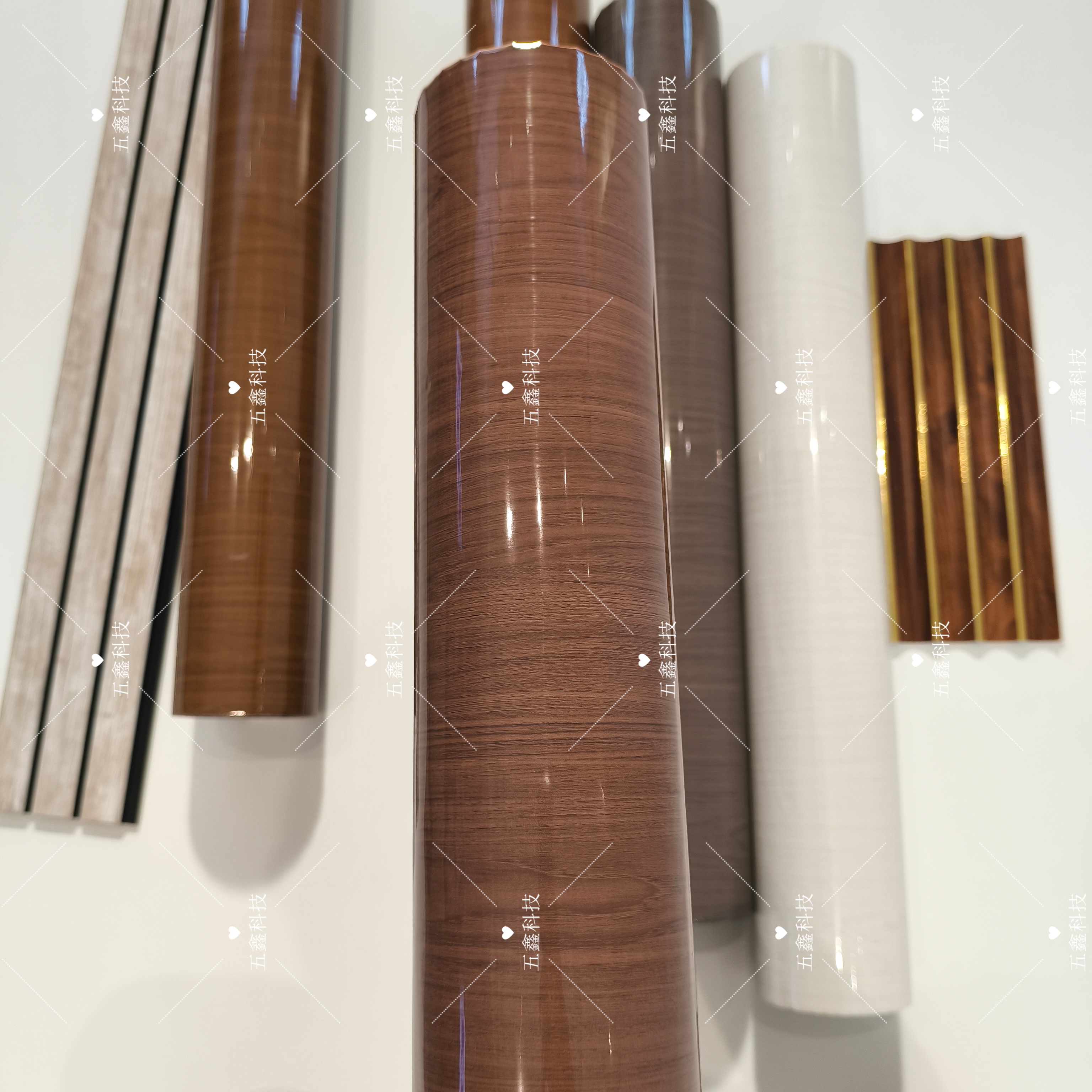 五鑫科技仿柚木直纹系列热转印膜,纹路呈细腻连贯的仿柚木直纹,颜色包含暖棕、深棕与浅灰等多种色调,适配不同装饰风格。其表面耐刮擦,日常使用不易留痕;遇水不易变形脱落,潮湿环境下也能保持稳定;具有较强的耐晒性,长期光照下颜色不易变浅。适用于密度板家具面板、免漆门、封边条、工艺品底座等产品的表面装饰,可提升产品质感。