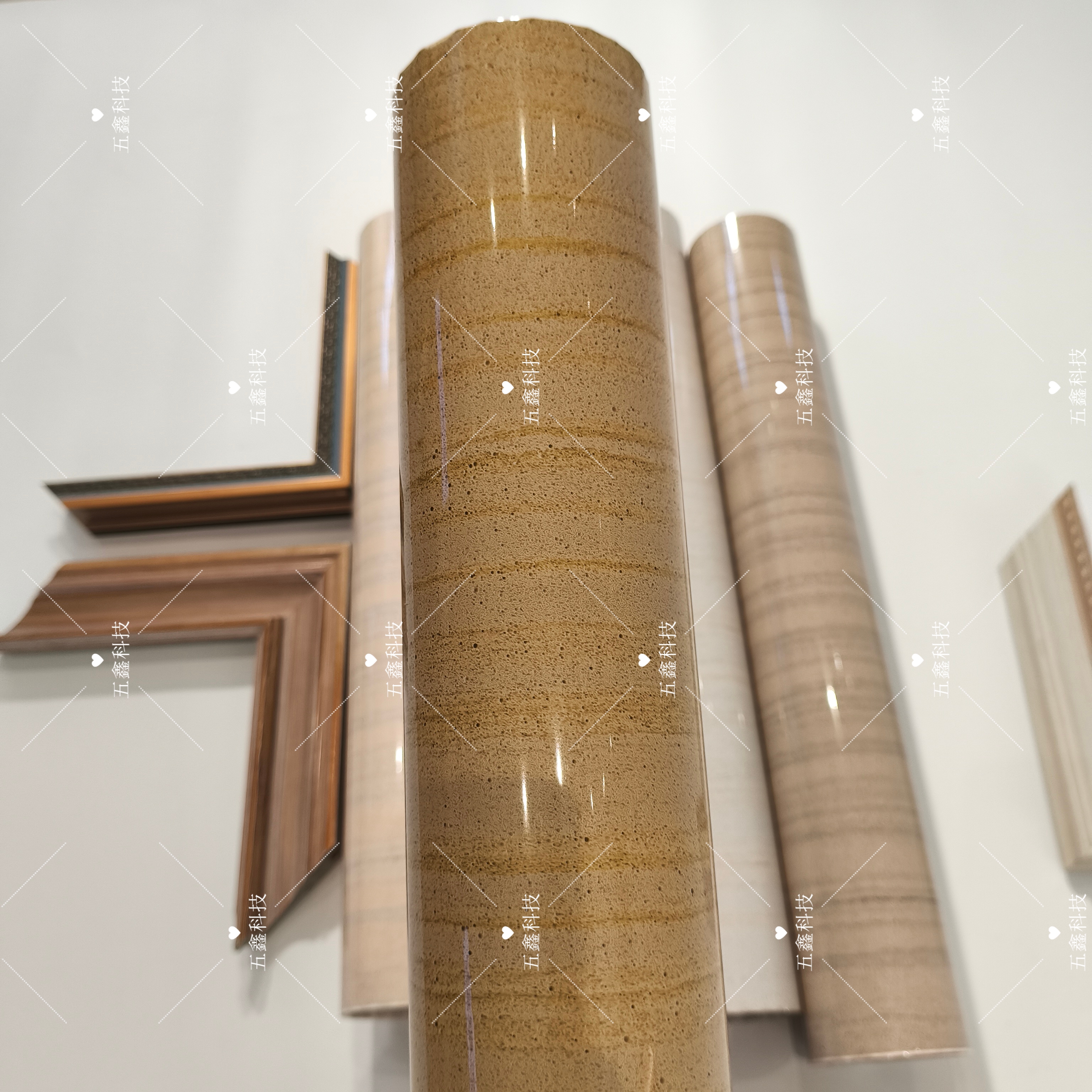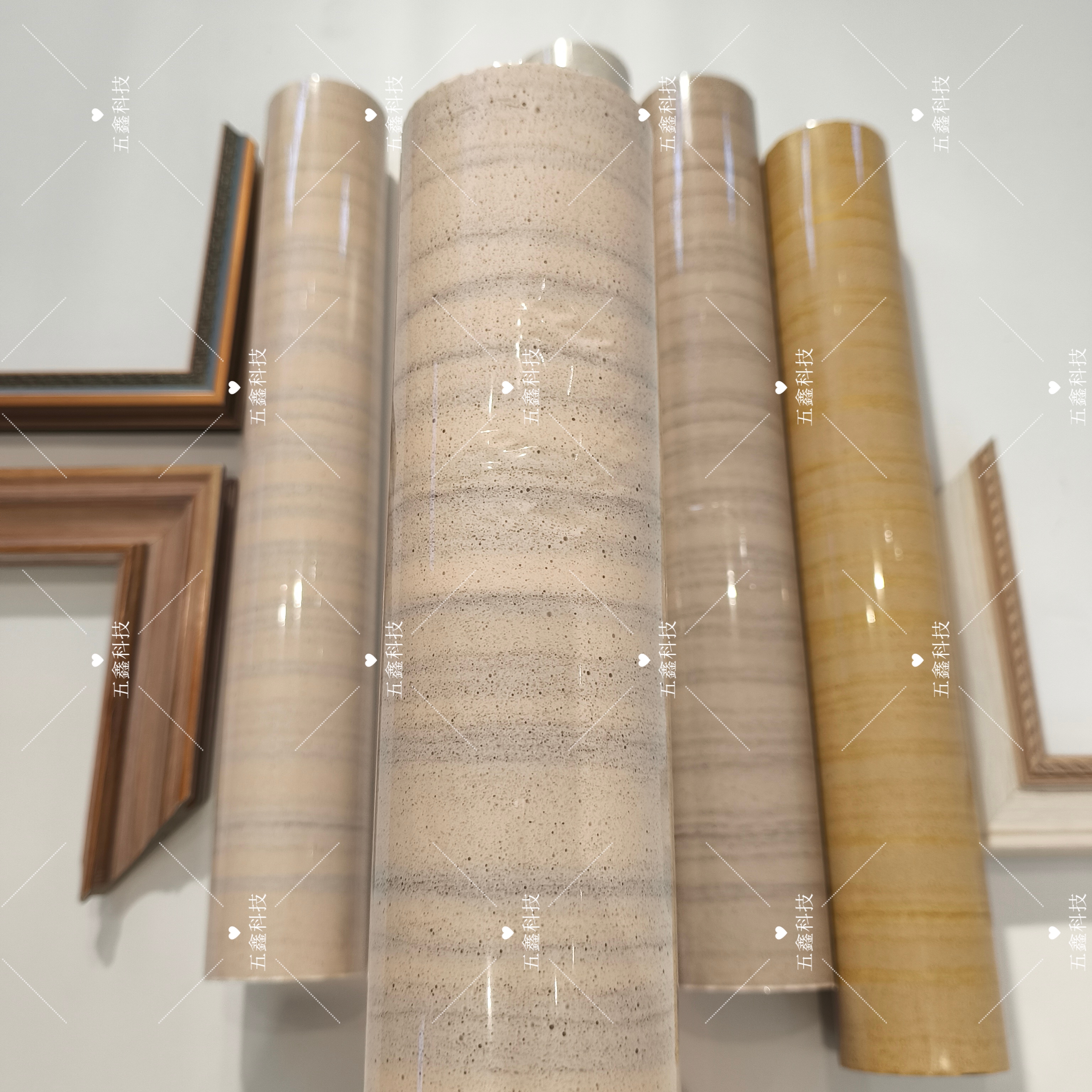 五鑫科技的细条石纹肌理热转印膜,纹路是细腻的细条石纹肌理,裹挟着天然石材般的细微颗粒质感,颜色涵盖浅褐、米灰、暖棕等自然色调,过渡柔和且贴近原生石韵。它耐刮擦、防水渍、抗日晒,适配密度板家具面板、免漆门、工艺品等的表面装饰,无需上漆便能让产品透出素净的石质质感。