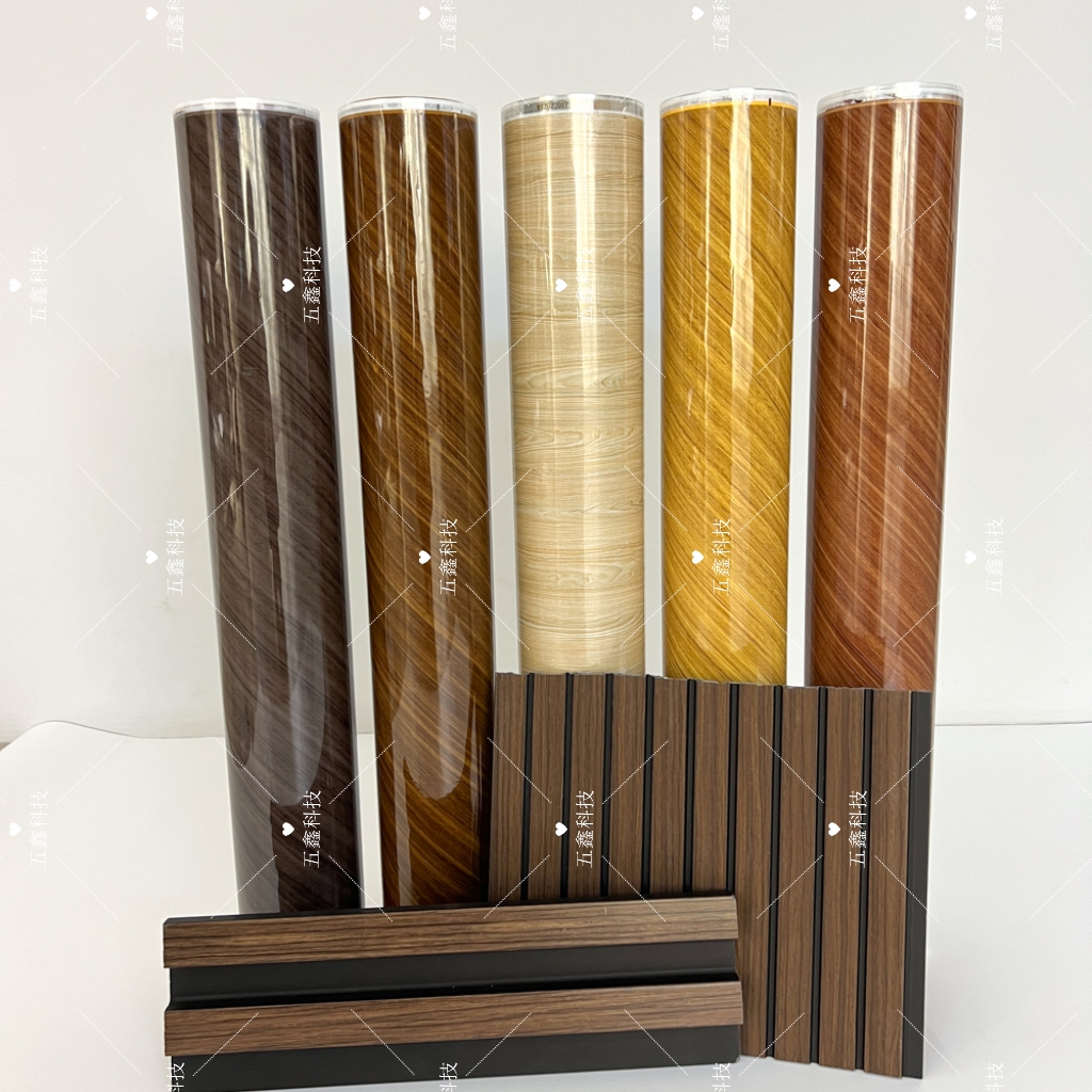 五鑫科技的仿柚木木纹热转印膜,色泽覆盖深棕至浅褐的自然柚木色调,纹理细腻贴合原木肌理。它耐刮擦不易留痕,耐水防潮难渗渍变形,耐晒稳固,长期光照也能维持色泽不褪。适配PS、实木等基材,恰好契合相框、画框的表面装饰需求,让装裱器物兼具自然质感与耐用性。