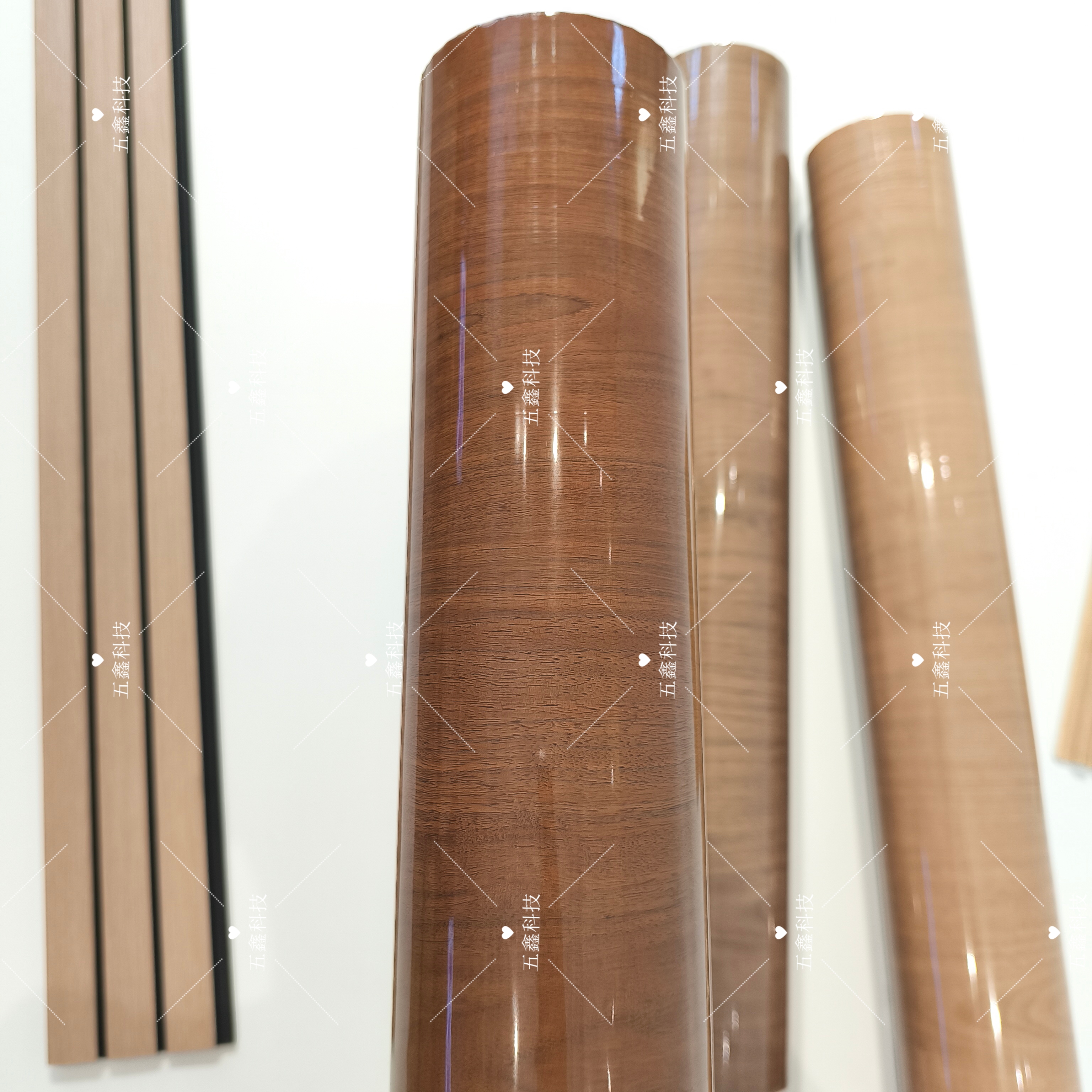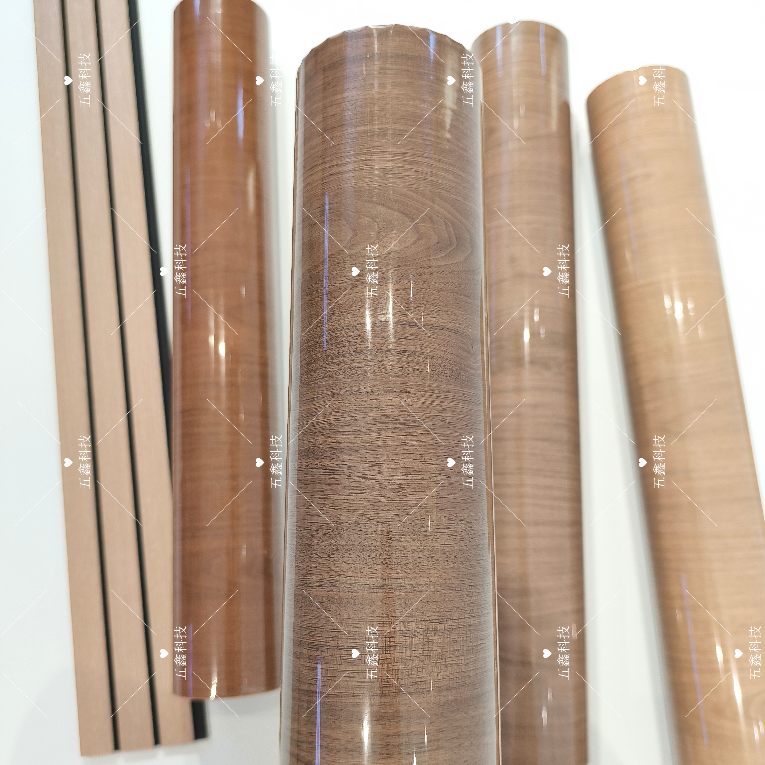 五鑫科技的肤感胡桃木烫印箔,纹理复刻胡桃木自然细腻的肌理,颜色涵盖深棕、暖棕等多色调,尽显木质温润质感。它兼具耐刮、耐水、耐晒特性,适配PS、实木等材质,为画框相框表面装饰赋予雅致胡桃木肌理,让相框在视觉质感与耐用性上同步升级。