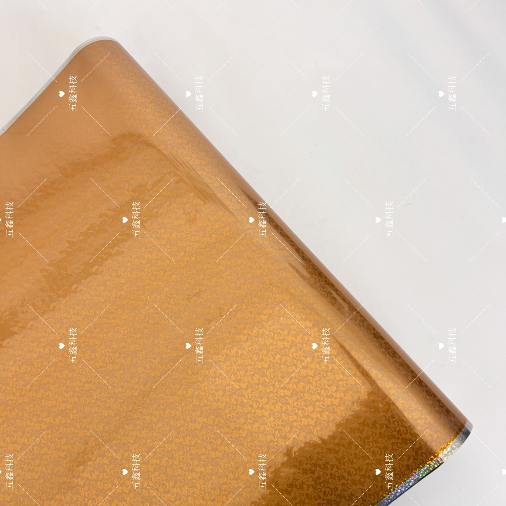 五鑫科技镭射颗粒纹热转印膜,呈现银、金、铜等幻彩金属色泽,表面布满细腻镭射颗粒,视觉璀璨夺目。具备耐刮、耐水、耐晒特性,适配PS、实木等材质,可用于相框、画框表面装饰,长期使用纹理与色彩仍稳定如初,为装饰件注入奢华质感。