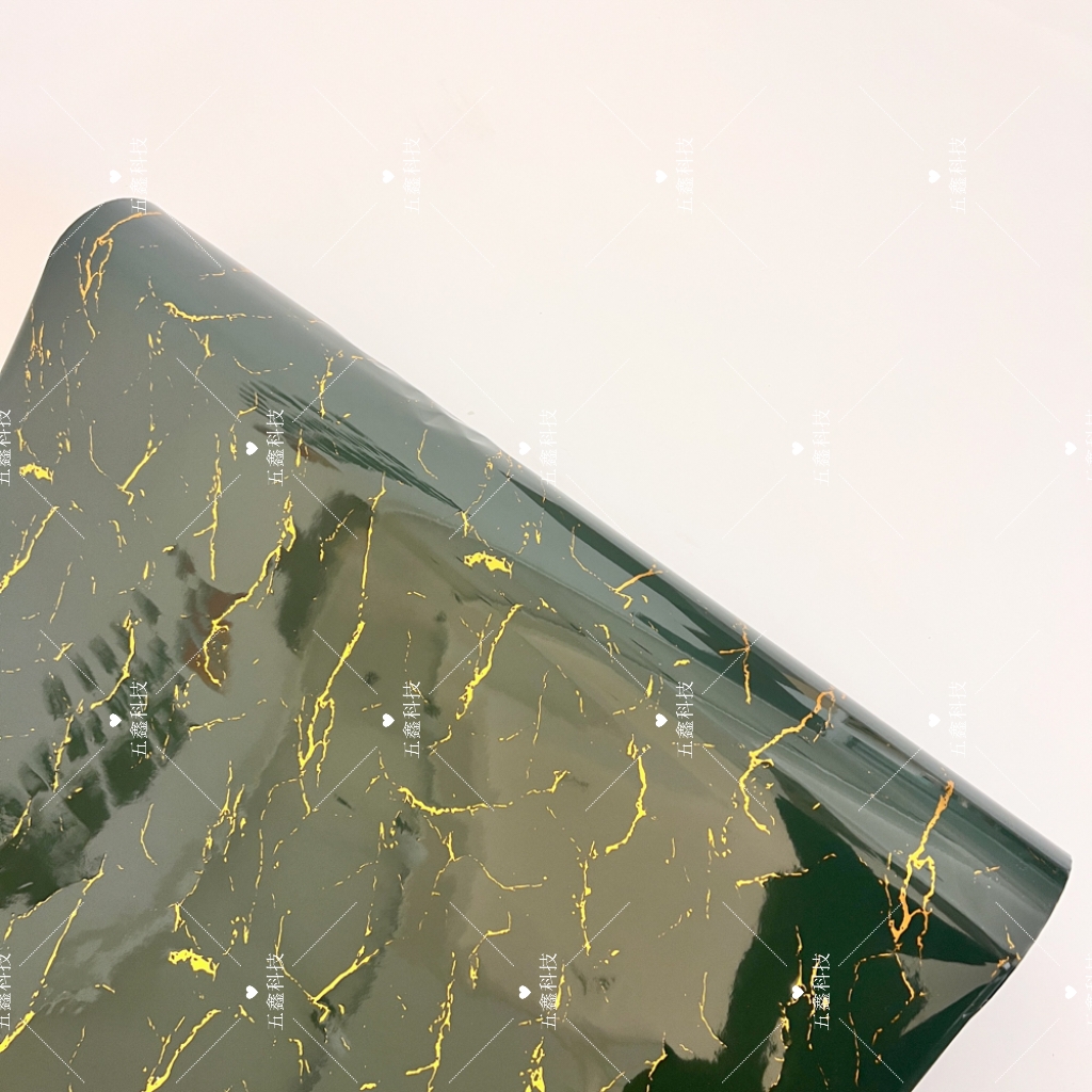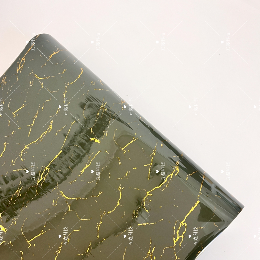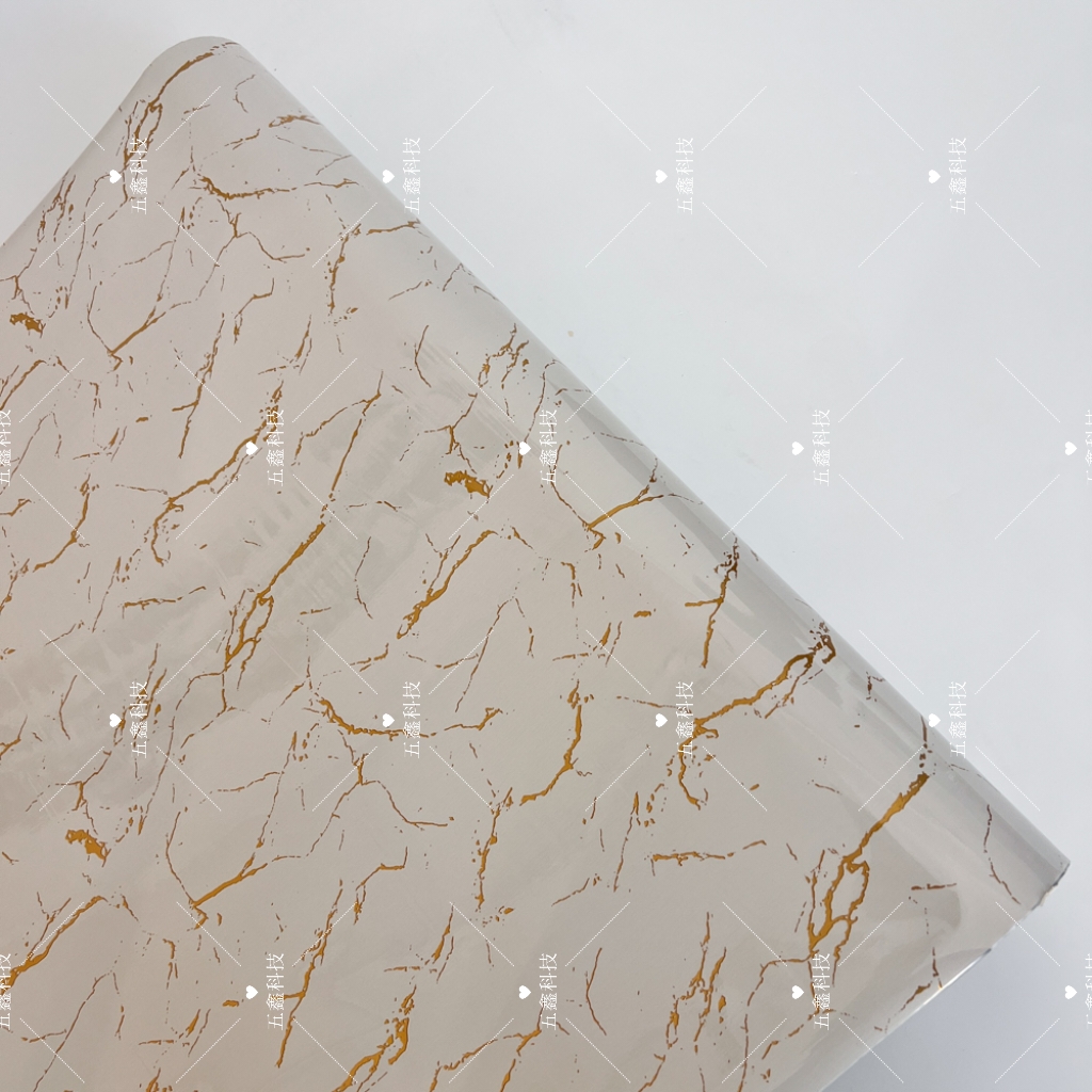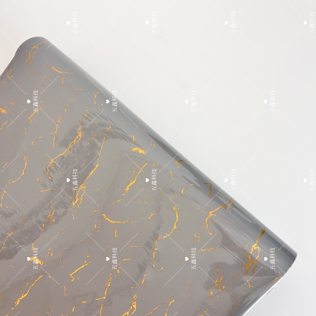 五鑫科技金裂石纹系列热转印膜以不规则裂纹纹理搭配金色线条为核心纹路,基底涵盖灰、白、深绿等多种颜色。该产品耐刮、耐水、耐晒,贴合PS材质装饰板表面后,既保留石纹的自然质感,又以金色线条增添视觉层次,形成持久稳定的装饰效果,让装饰板兼具实用与美观。