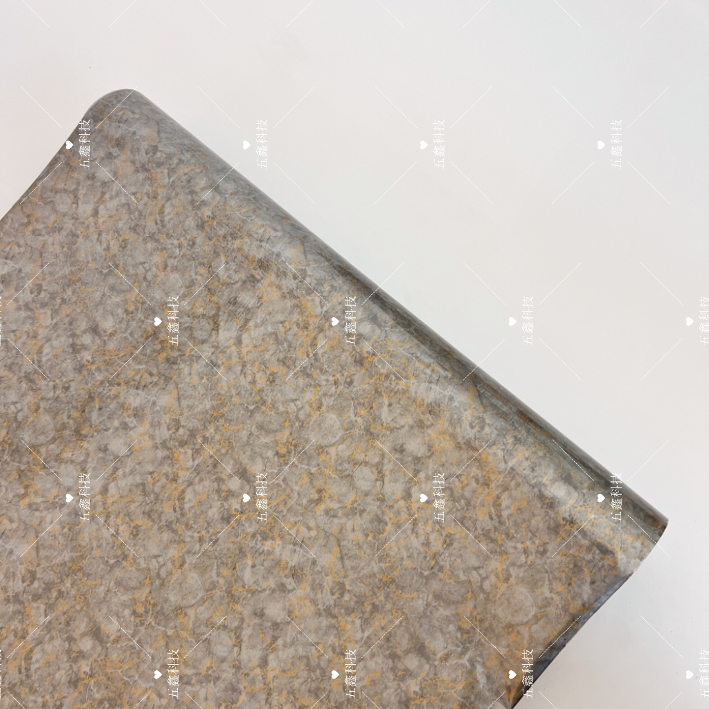 五鑫科技金属锈金纹热转印膜,表面呈现金属氧化后的斑驳肌理,金色、褐色与灰色自然交织,颗粒纹理细腻且层次分明。它具备耐刮、耐水、耐晒的特性,在不同环境下都能保持表面质感稳定。该热转印膜适用于PS、PVC材质装饰板的表面装饰,能为装饰板赋予工业金属沉淀后的质感,让装饰效果更具风格。