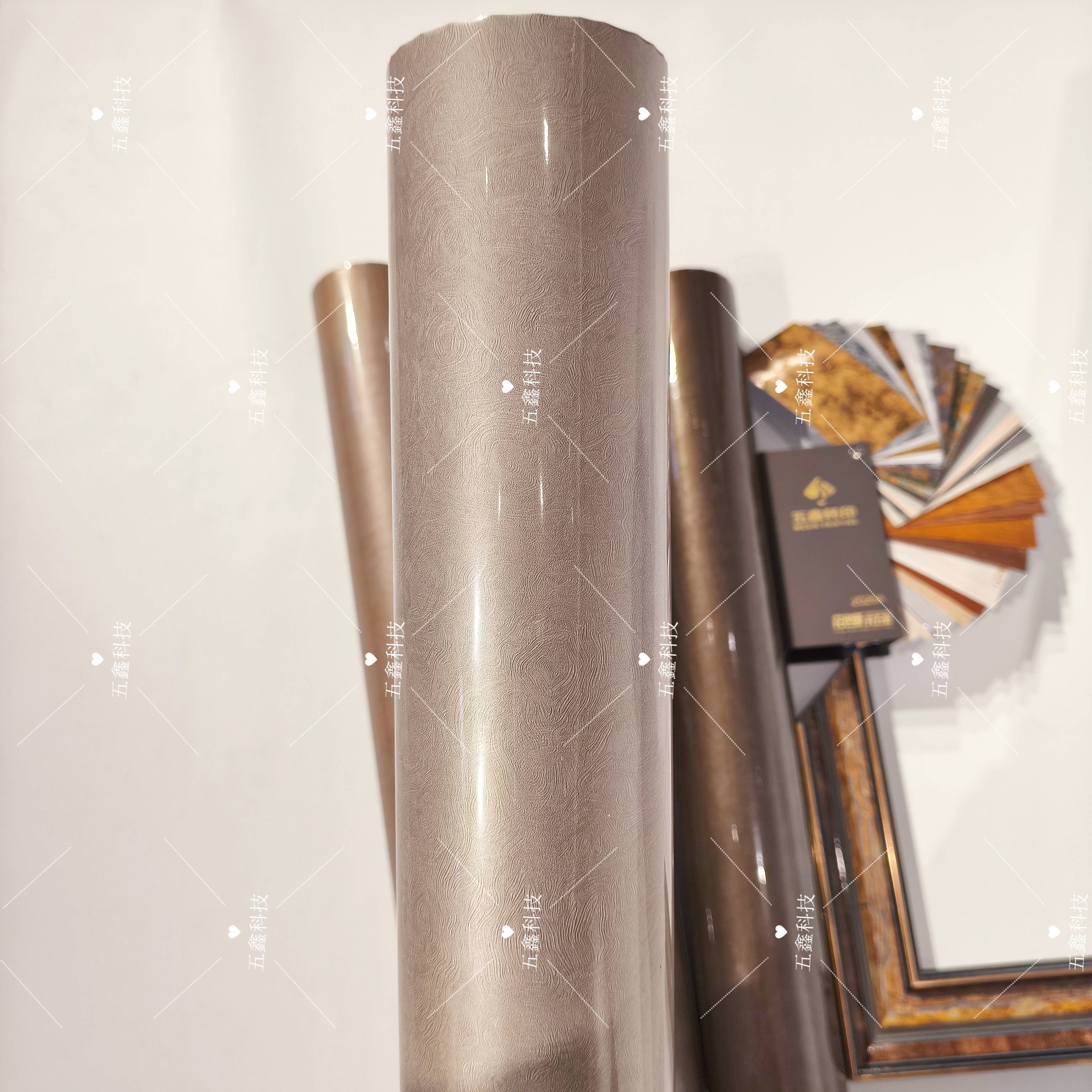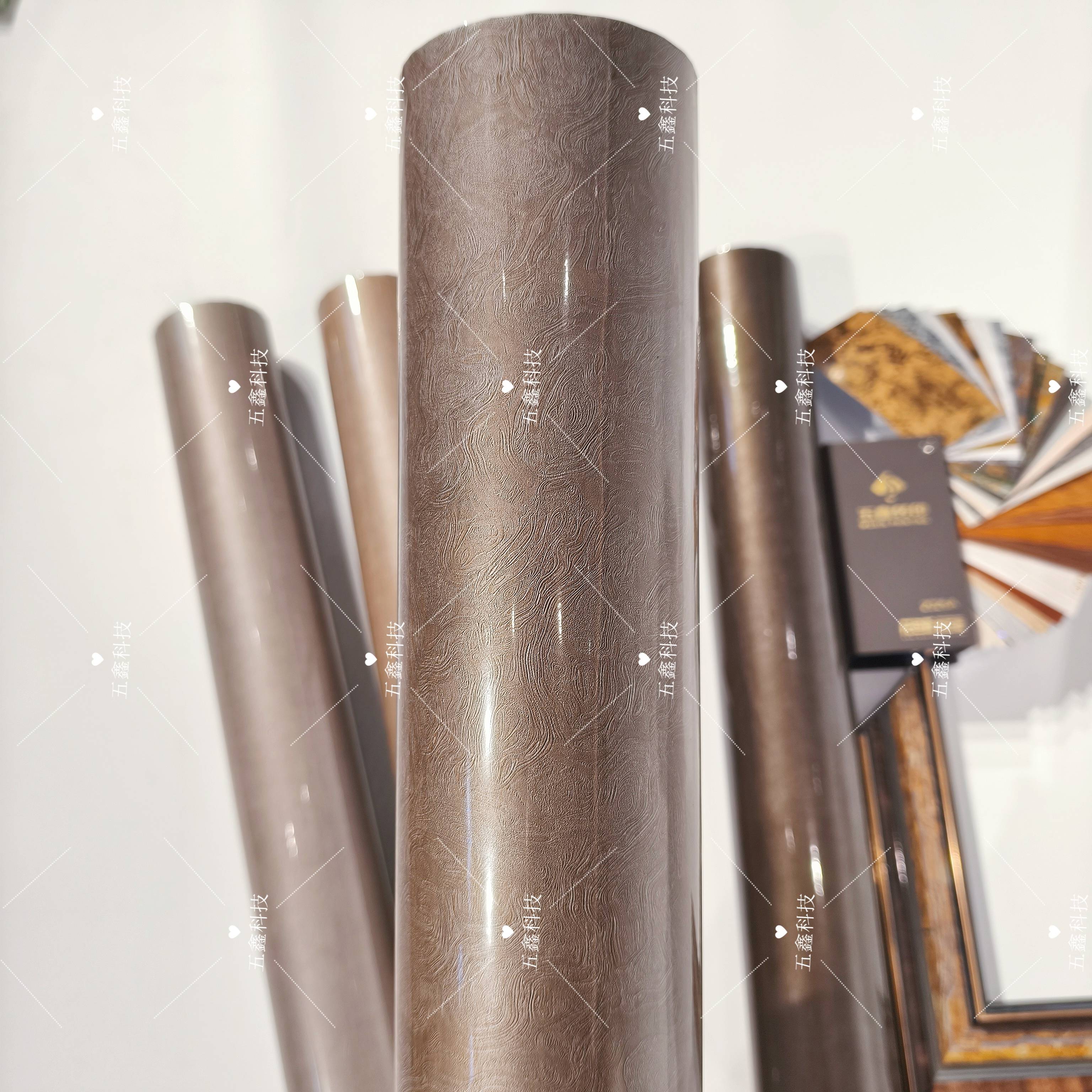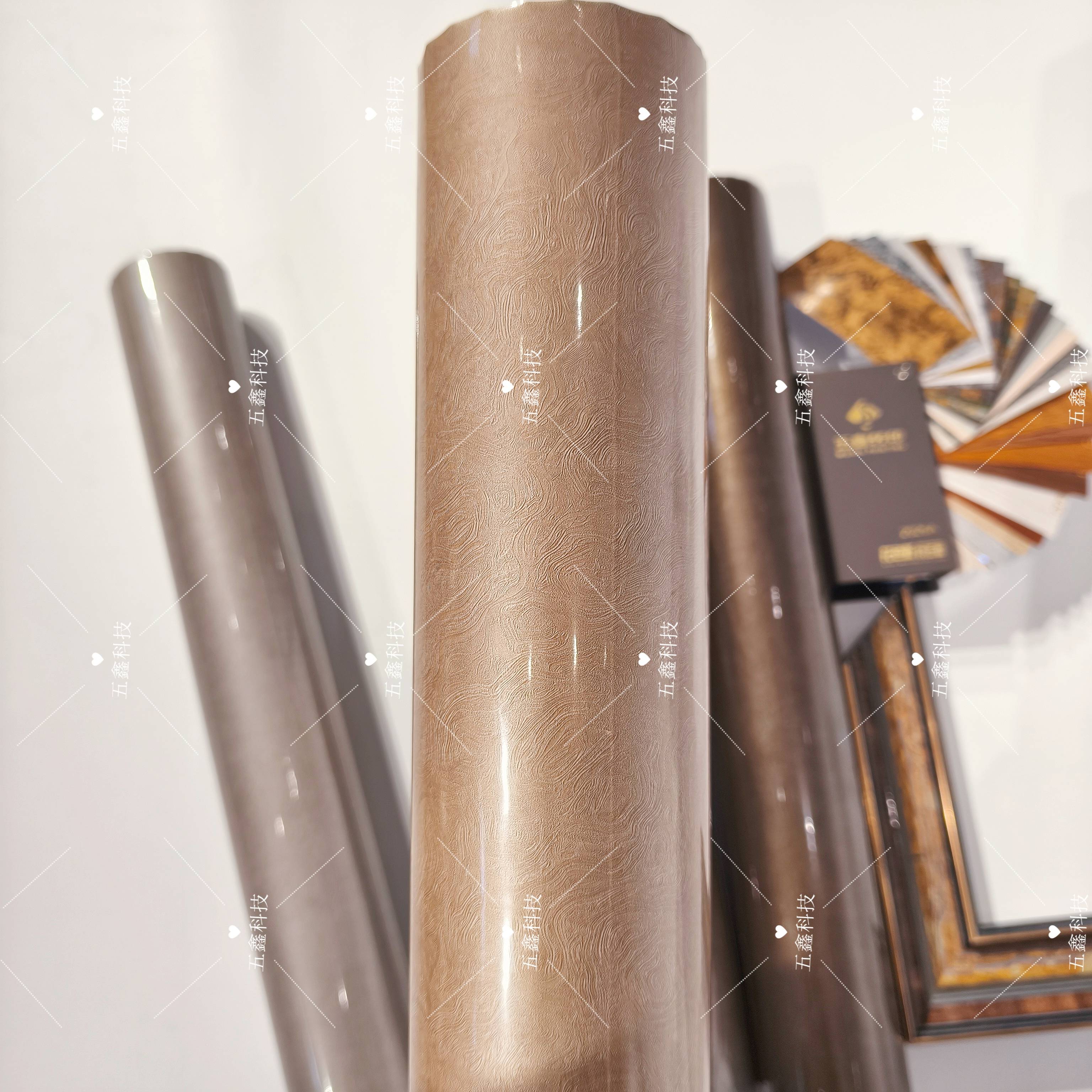 五鑫科技的拉丝旋流纹热转印膜,基底铺陈细腻的金属拉丝肌理,叠加灵动的旋流状纹路,纹理随光影呈现出自然的涡旋层次;色彩上涵盖仿古铜的温润棕调与冷调金属灰,不同色调都能凸显纹路的立体质感。这款膜具备耐刮、耐水、耐晒的特性,与PS、PVC材质装饰板适配性良好,转印后能让装饰板表面兼具金属的质感与旋流纹的艺术感,适配各类装饰板的表面装饰需求。