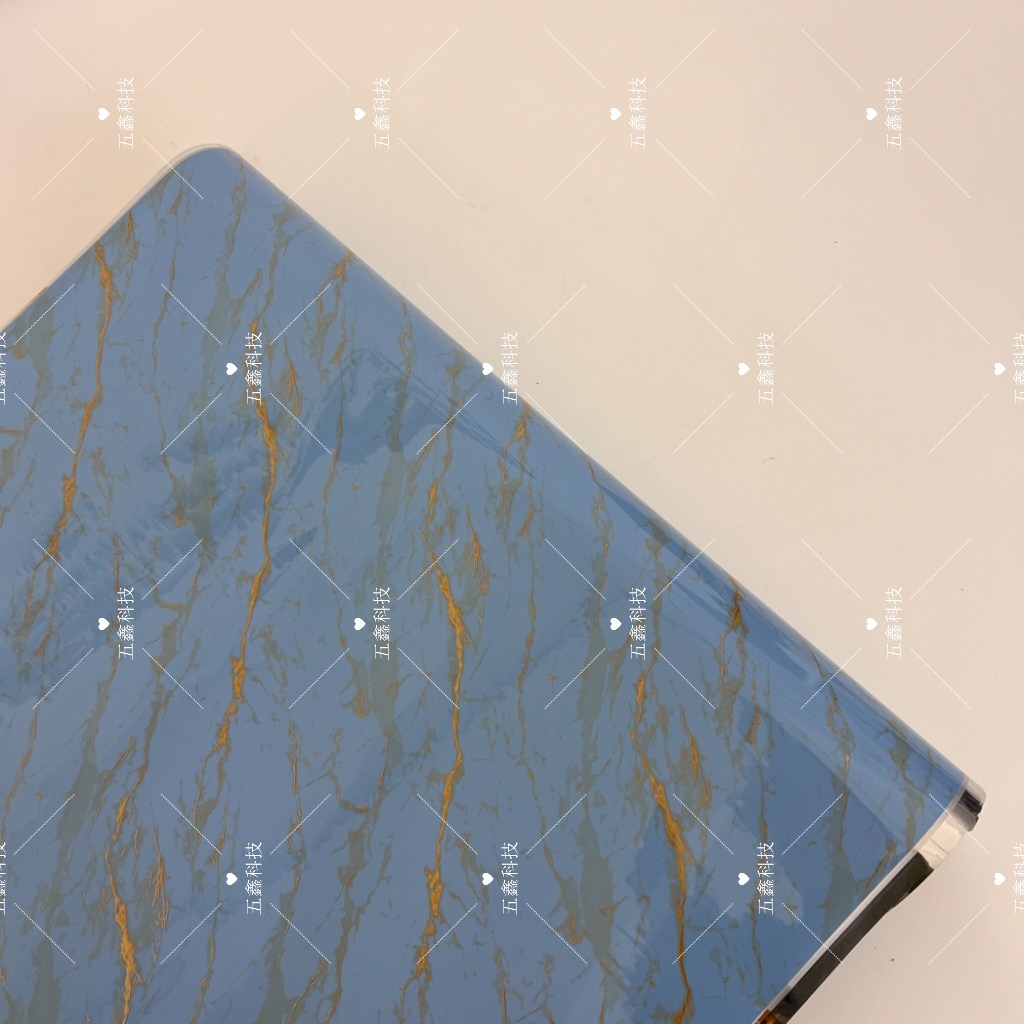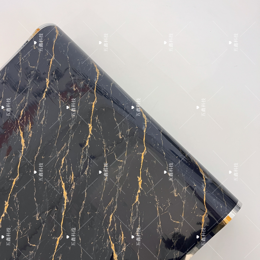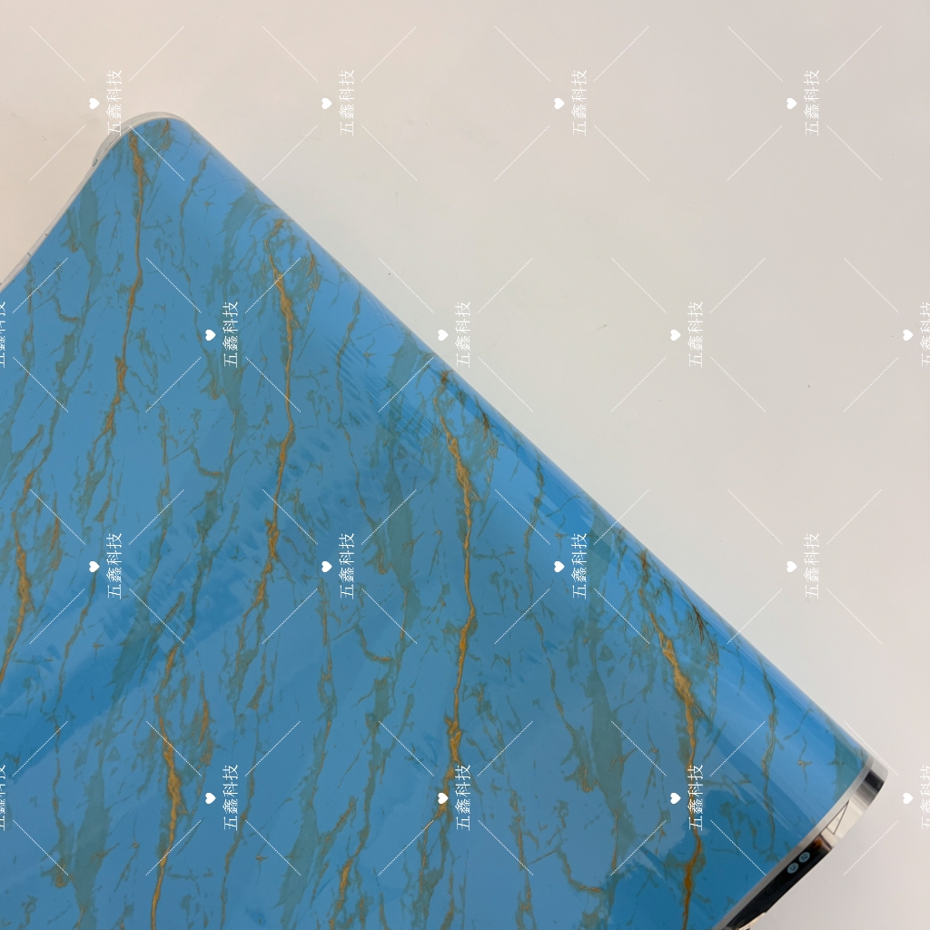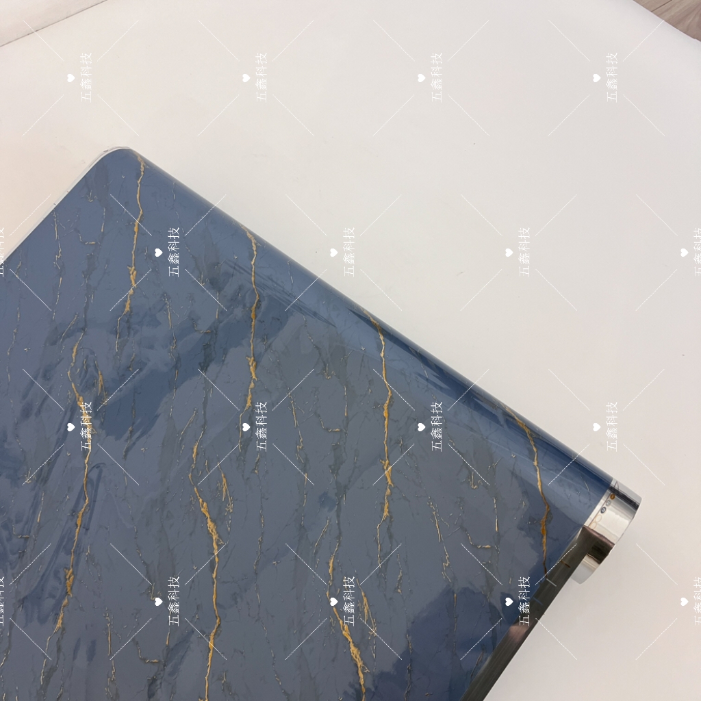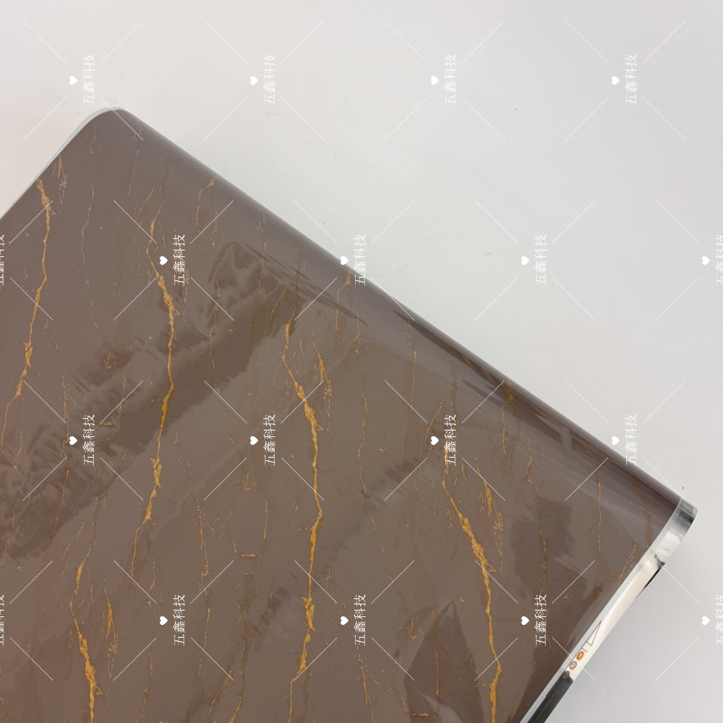 五鑫科技的鎏金大理石装饰纹系列热转印膜,涵盖棕调、浅蓝、深灰、墨黑、湖蓝等色调,以大理石肌理为基底,交错着鎏金线条。它耐刮擦不易留痕,遇水擦拭即净,长期日晒也不易褪色,适配PS、PVC材质的装饰板、格栅板,能为这类板材表面赋予精致且耐用的装饰质感。